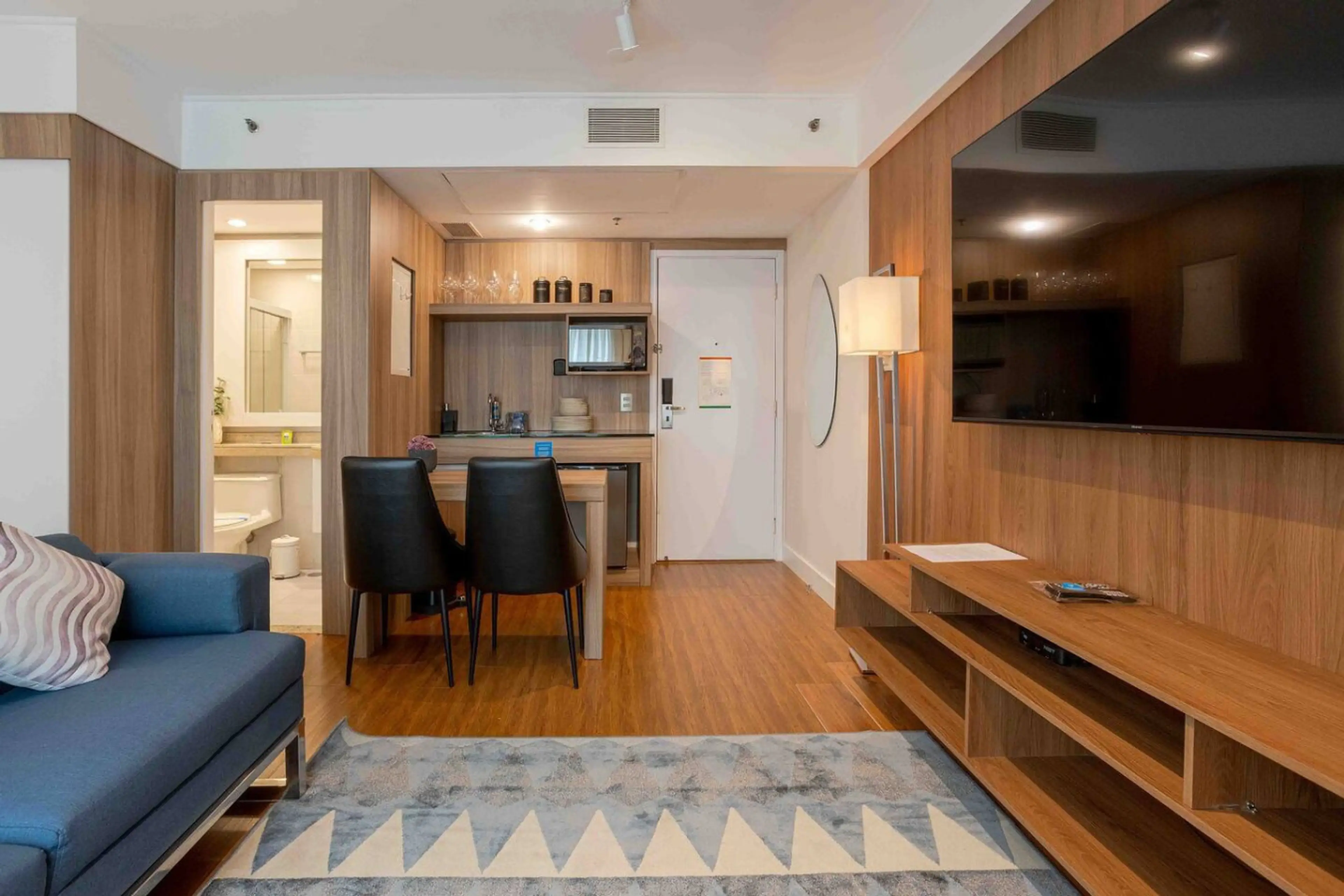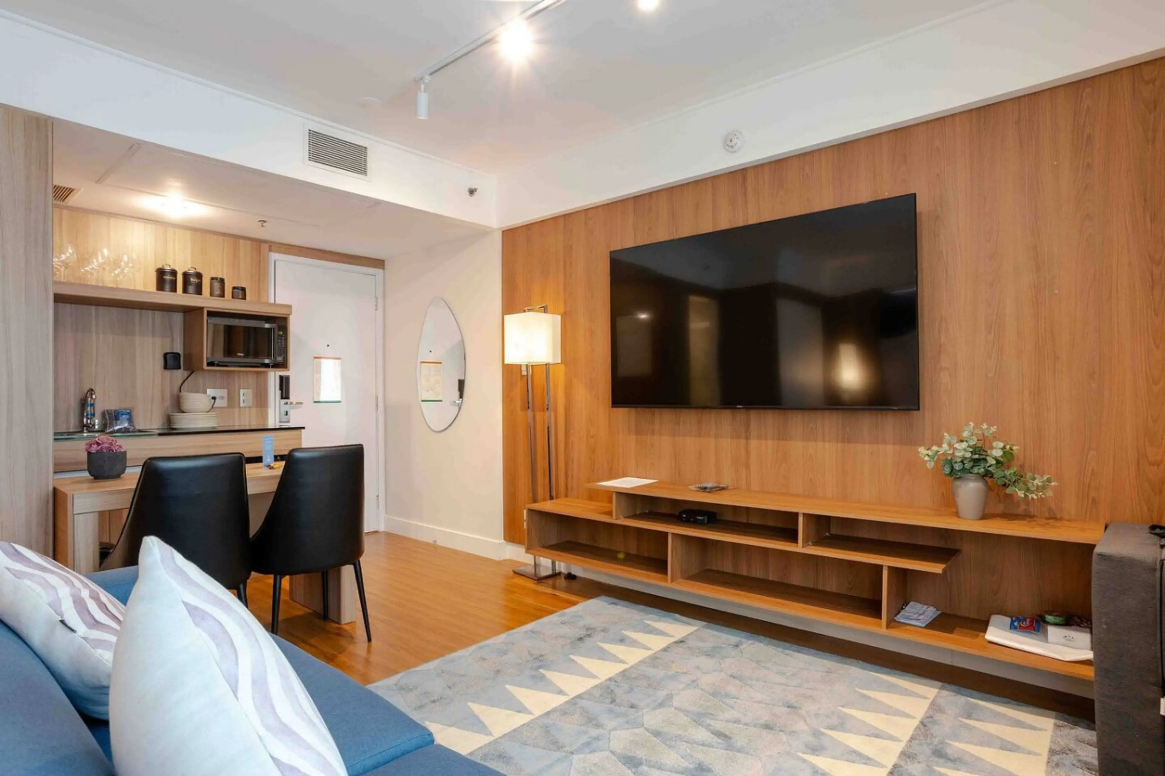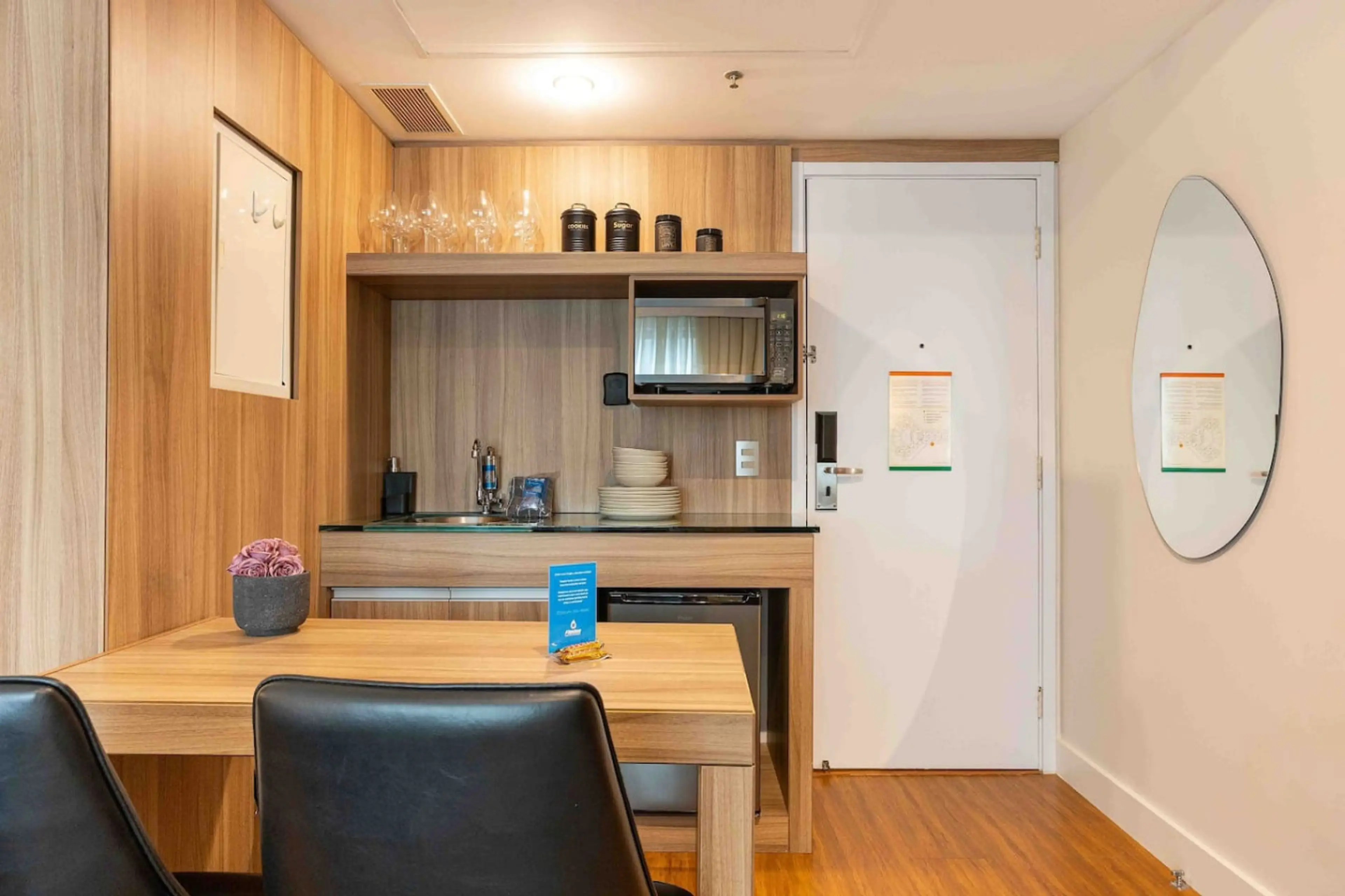 Elegant studio inside a hotel in Moema – São Paulo. Prime location, high-speed internet, comfortable bed, fully equipped kitchen. Ideal for work or leisure. Premium cleaning and digital check-in included.